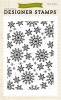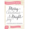 To create the card use the brown stamping ink to stamp the tree background stamp onto kraft cardstock. Cut into a square to form the base of the card. Use red stamping ink to stamp the snowflake background stamp onto red cardstock. Mount onto two white scallop border strips cut with a border punch. Die cut the two trees from two different shades of green cardstock and mount on the card (backgrounds and top layers are included with this die cut). Die cut the word "joy" from white cardstock and mount on the card. Add a red button tied with twine.