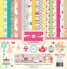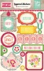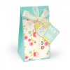 For the treat boxes, I used several different die cut box shapes to cut a variety of sizes of boxes from more of the patterned paper. Again, I decorated each box with stickers, die cuts, and embellishments that make the items all very feminine.