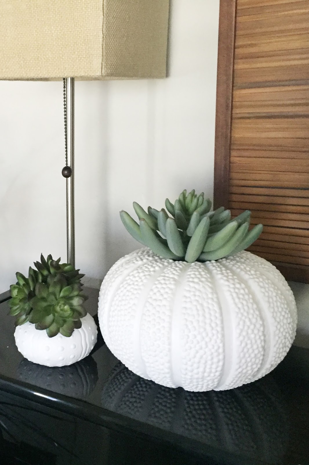 3. Feeling fake? This is the one place to which I would be cautious about adding a real plant. You do NOT want water on your piano. If you're super good at wiping up all the moisture after watering plants, then a traditional plant will be great here. If not, go with something fake. I went with some succulents from Hobby Lobby placed inside these gorgeous coral pieces from Target. I like how they also add texture to the space.