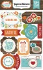 Here's another look at this project. You can see I wrapped patterned paper around the spools for the "thread." Then I added stickers, die cuts, and fibers to further dress up each spool. You can stack them or make one or two. This would be a quick and easy craft to do with kids. Just use a strong adhesive to hold the paper onto the spools.