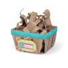I used wood-looking scrapbooking paper to cut the box out. Then I decorated the box with ephemera shapes, ribbon, and other items. I placed a large ephemera framed phrase on a wooden dowl and stuck it into some floral foam. I covered the foam with some kraft-colored paper filler.