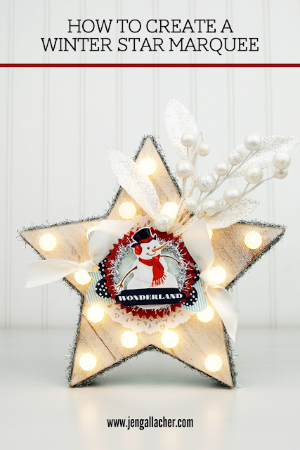 Are you currently shopping the Christmas clearance sales? Watch for the marquee shapes that are super popular right now? I used this star shape and altered it to make a winter star marquee. I love the way it looks when it's all lit up. And it's super easy to recreate.